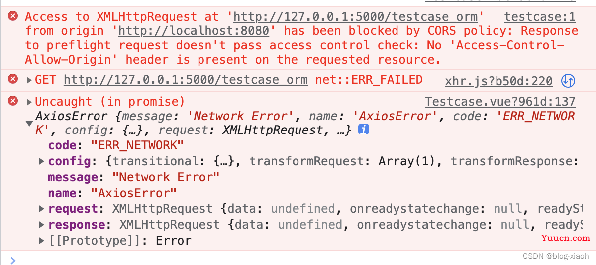 Vue2 跨域问题报错AxiosError net::ERR_FAILED、 Network Error、ERR_NETWORK