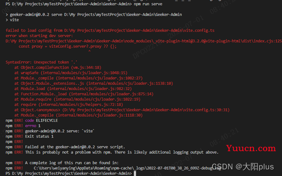 运行安装vue3+vite+Ts项目报错,无法加载vite.config.ts文件(failed to load config from D:\XXX\vite.config.ts)