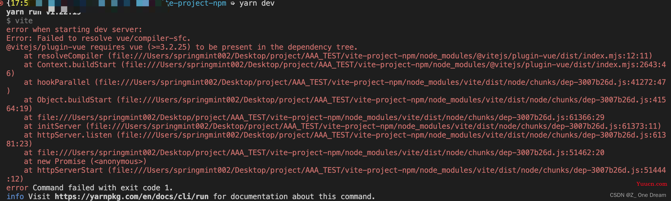 error when starting dev server:Error: Failed to resolve vue/compiler-sfc.