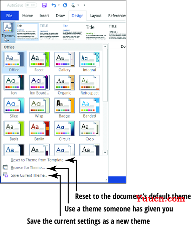 Office 2019有很多主题可供您选择,以保持事物的整洁和整洁。主题是一组三种类型的占位符: 字型 色彩 图形效果 当您想要标准化多个文档之间或应用程序之间的格式时,主题很有用。例如,您可能希望简历和随信一起发送的求职信在格式上保持一致...