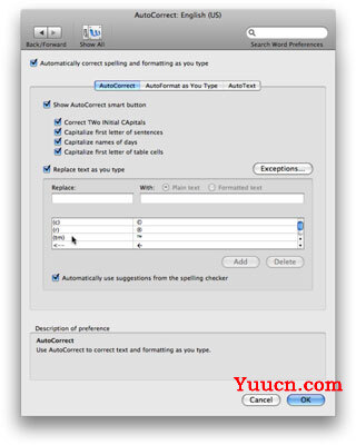 在Mac的Office 2008中使用自动更正!Mac上的Office 2008中的“自动更正”功能有助于防止常见的拼写错误。AutoCorrect会监视您键入的内容并自动纠正常见错误,而不会像拼写检查一样使您的波浪形下划线或对话框打扰您。...